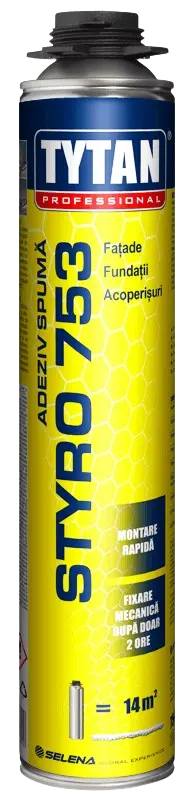 Tytan Professional STYRO 753 este adezivul spumă inovator și durabil, special conceput pentru izolarea termică exterioară eficientă a fațadelor, acoperișurilor și fundațiilor cu plăci de polistiren EPS și XPS, fiind perfect compatibil cu sistemele ETICS. Acesta asigură o aderență puternică, contribuie la reducerea semnificativă a punților termice prin umplerea optimă a golurilor dintre plăcile izolatoare și oferă eficiență economică prin productivitate crescută, o acoperire mare de până la 14 m² și posibilitatea de ancorare mecanică după doar 2 ore (cu un timp de corecție de 15 minute). Aplicabil într-un interval extins de temperaturi, de la 0°C la +30°C, Tytan Professional STYRO 753 este formulat fără emisii MDI, asigurând un mediu de lucru mai sigur și mai sănătos.