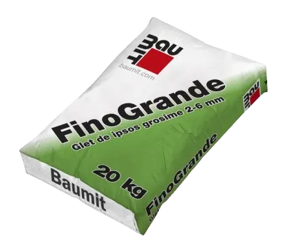 Baumit FinoGrande este un glet pe bază de ipsos, special conceput pentru finisarea interioară a pereților și tavanelor, ideal pentru obținerea unor suprafețe perfect netede pe tencuieli de var, var-ciment, ipsos sau direct pe beton. Aplicabil atât manual, cât și mecanizat, într-un strat versatil de 2 până la 6 mm, acest glet se distinge prin aderența sa ridicată la suport și prin aplicarea deosebit de ușoară. Cu un timp de lucru de 60 de minute, Baumit FinoGrande permite o prelucrare eficientă și confortabilă, contribuind la crearea unei baze impecabile, pregătită pentru vopsitorie sau alte finisaje decorative.