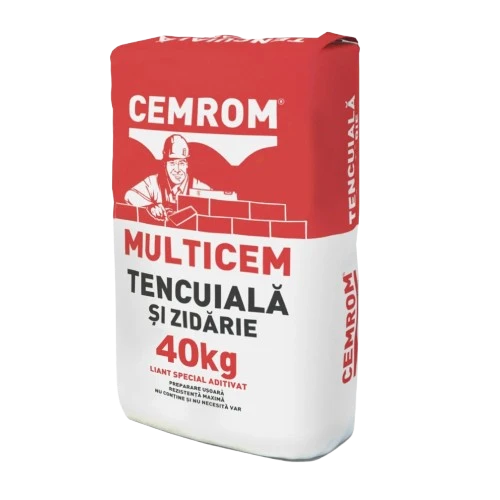 Alegeți MULTICEM, liantul special aditivat preferat de zidarii pricepuți, pentru mortare de zidărie (cărămidă, BCA, blocheți), tencuială interioară/exterioară și șape curente de înaltă performanță. Prepararea este deosebit de ușoară, necesitând doar amestecul cu nisip și apă (fără adaos de var), iar mortarul rezultat își păstrează excelent lucrabilitatea un timp îndelungat, facilitând aplicarea eficientă atât manual, cât și mecanizat. MULTICEM garantează aderență superioară la toate tipurile de straturi suport și rezistență maximă, asigurând lucrări durabile și finisaje de calitate superioară.