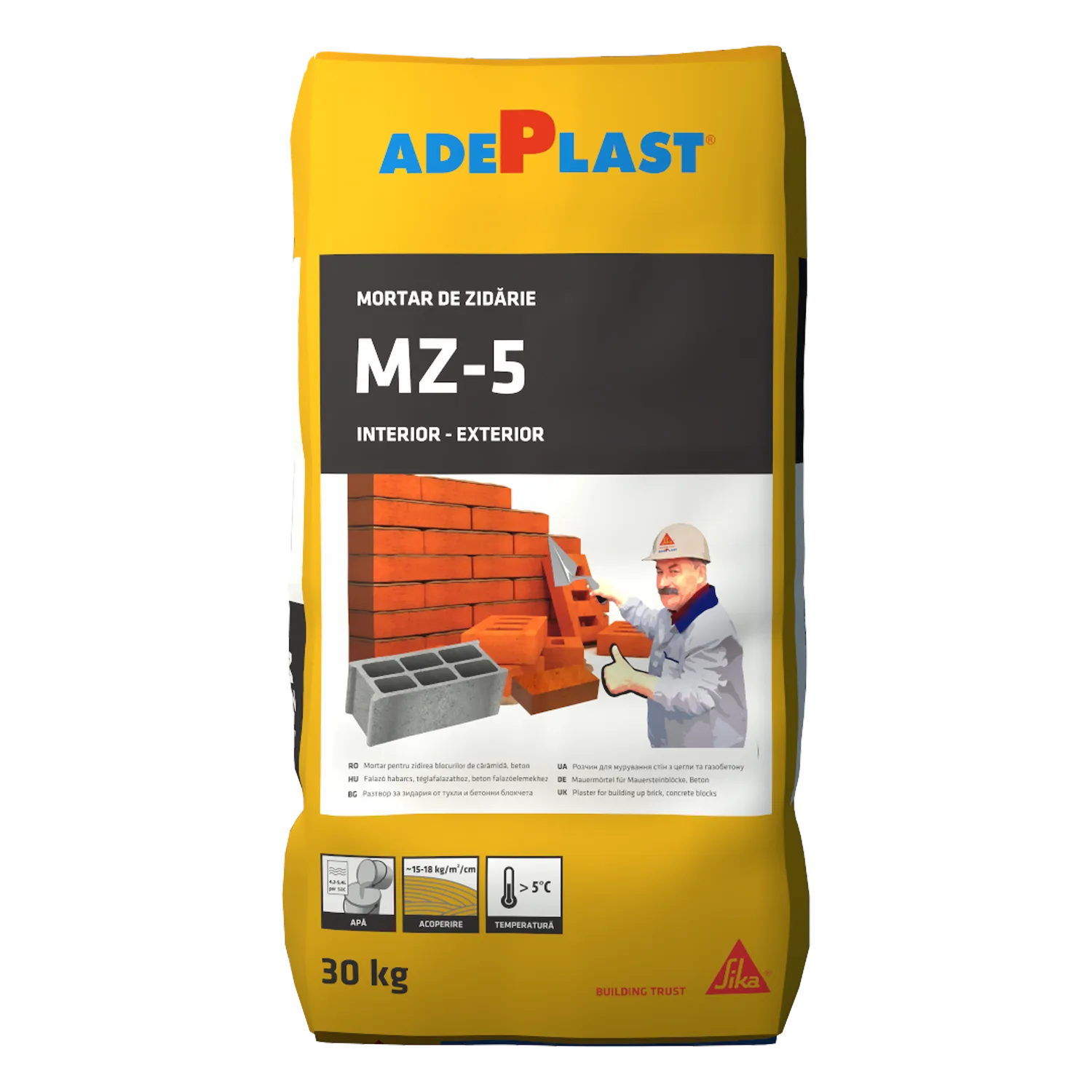 Mortar performant de uz general pentru zidărie destinat în construcții exterioare pentru zidirea clădirilor cu blocuri de beton, cărămidă sau cu blocuri de beton uşor, la zidărie armată. Poate fi utilizat pentru rostuire și umplere goluri sau defecte în zidărie, se poate aplica în pereți, stâlpi și pereți despărțitori. Produsul se recomandă în mod special pentru cărămizile cu goluri datorită patului consistent care se poate realiza între cărămizi, ceea ce duce la un consum redus.